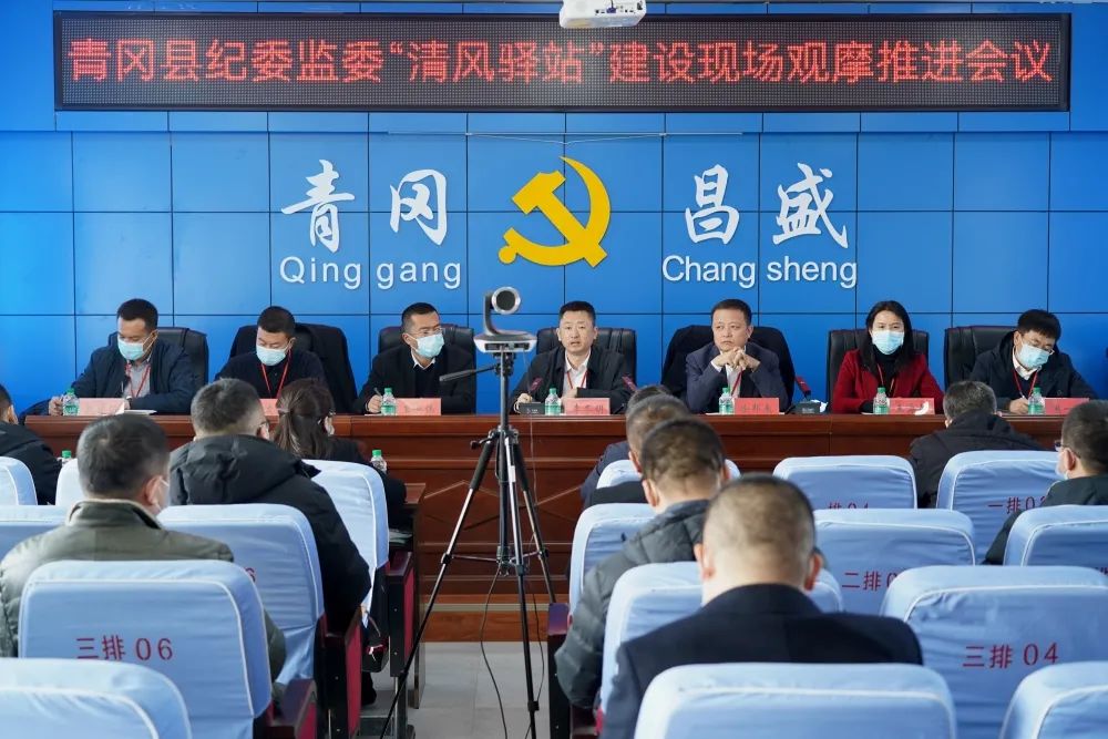 为强化乡镇(街道)纪检监察规范化管理,推进“清廉农村”建设走深走实,青冈县纪委监委以村(社区)为单位,创新实施了“清风驿站”建设。3月7日,县纪委监委组织全县各乡镇、街道到昌盛镇进行现场观摩,借鉴学习“清风驿站”建设经验,压实各方责任,落实落靠工作措施,并组织召开专题会议进行推进部署。县委常委、县纪委书记、县监委主任李冬明出席会议并提出工作要求,会议由县纪委副书记、监委副主任徐邦来主持,各乡镇纪委书记、派驻街道纪检监察组组长和委机关相关科室负责人在主会场参会,各乡镇党委书记通过“钉钉”视频会议系统参加会议。