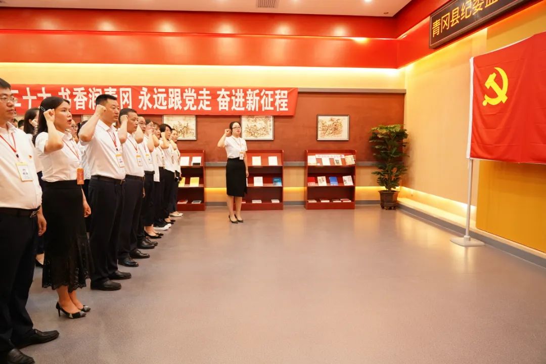 “我志愿加入中国共产党,拥护党的纲领,遵守党的章程,履行党员义务,执行党的决定,严守党的纪律……永不叛党。”在庄严的党旗下,青冈县纪委监委全体党员干部紧握右拳,重温入党誓词,回顾入党初心。