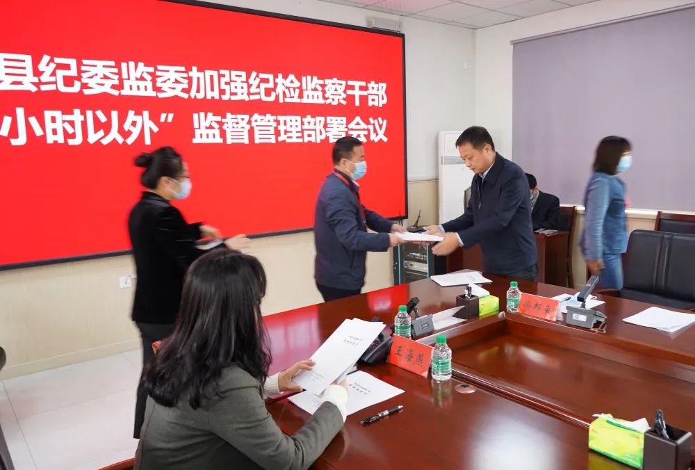 会上,宣读了《青冈县纪检监察干部“八小时以外”监督管理办法》,与会人员签订并递交了《“八小时以外”自律承诺书》和《保密承诺书》。