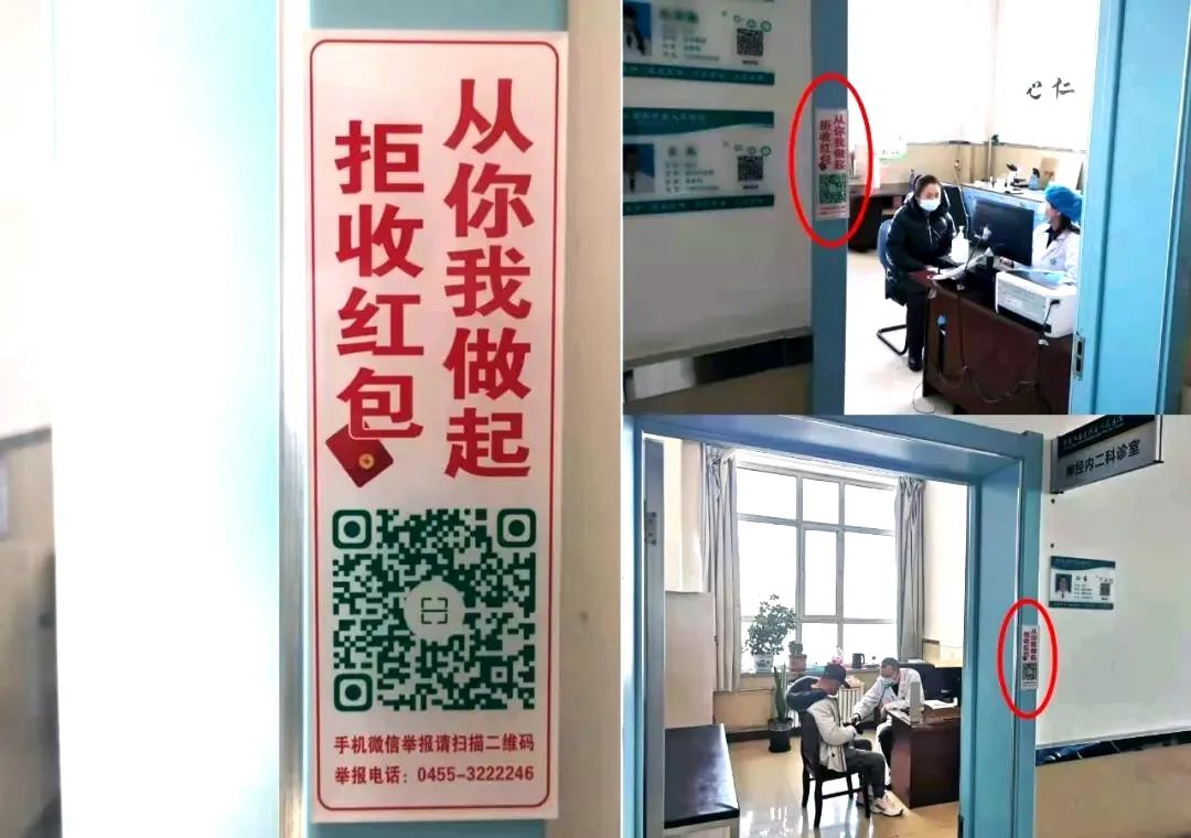 工作中,县纪委监委在各医院医生门口等显要位置都张贴了“拒收红包从你我做起”提示牌,公布了监督举报电话和“码上举报”二维码,并通过探望住院患者、查看医院监控录像、暗访患者家属等方式查找问题线索。同时,进一步畅通了与卫健、医保、市场监管等部门问题线索的移交渠道,对发现的问题实行清单式管理,逐条核实,推动相关责任单位及时整改。