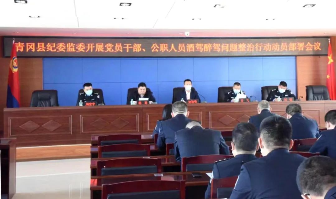 动员会议上,宣读了《青冈县纪委监委关于开展党员干部、公职人员酒驾醉驾问题整治月实施方案》,对专项整治行动进行了动员部署。要求公安机关要坚持日常严管与专项打击、集中整治、区域联治相结合,采取突击行动、重要时间节点和重点时段路段夜查等措施,开展高密度、高频次执法检查,持续保持严管严查高压态势,形成对酒驾醉驾行为的强大震慑。纪检监察部门要注重挖掘酒后驾车现象背后隐藏的违规公款吃喝、违规接受请吃等违反中央八项规定精神突出问题,对违法者“零容忍”,发现一起、查处一起,绝不姑息,持续营造整治工作的高压严管态势。