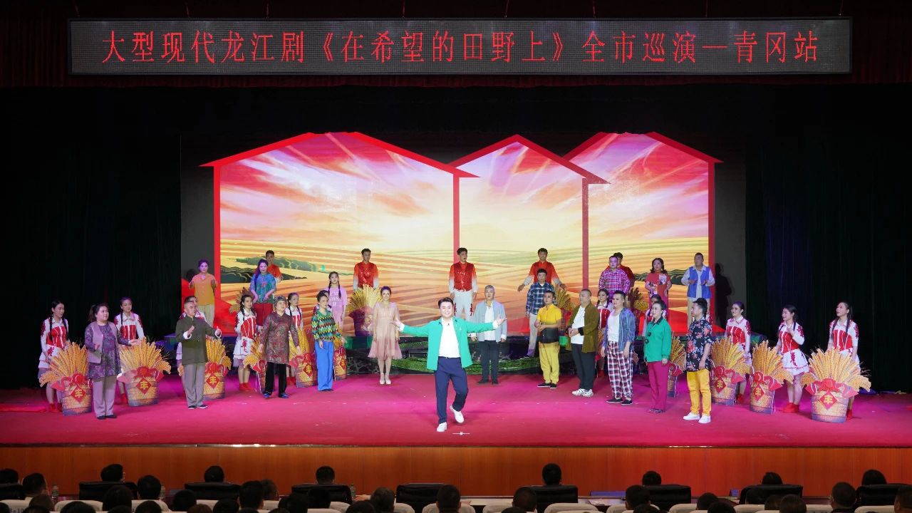 6月2日下午,由绥化市纪委监委主办、北林区纪委监委承办、北林区龙江剧艺术中心历时半年时间精心创排的大型现代龙江剧《在希望的田野上》走进青冈县巡演。